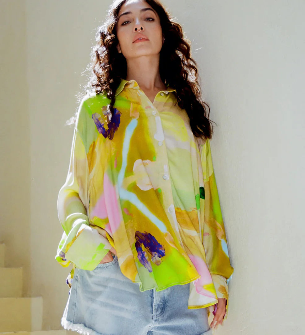 A considered palette of Espresso, soft pastels, and vivid brights moves across airy shirting, sculptural knits, and fluid tailoring.
