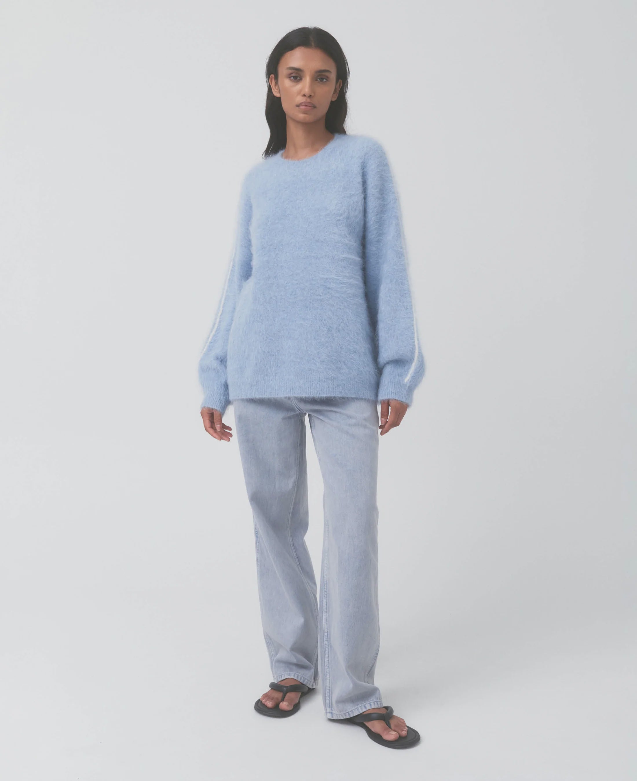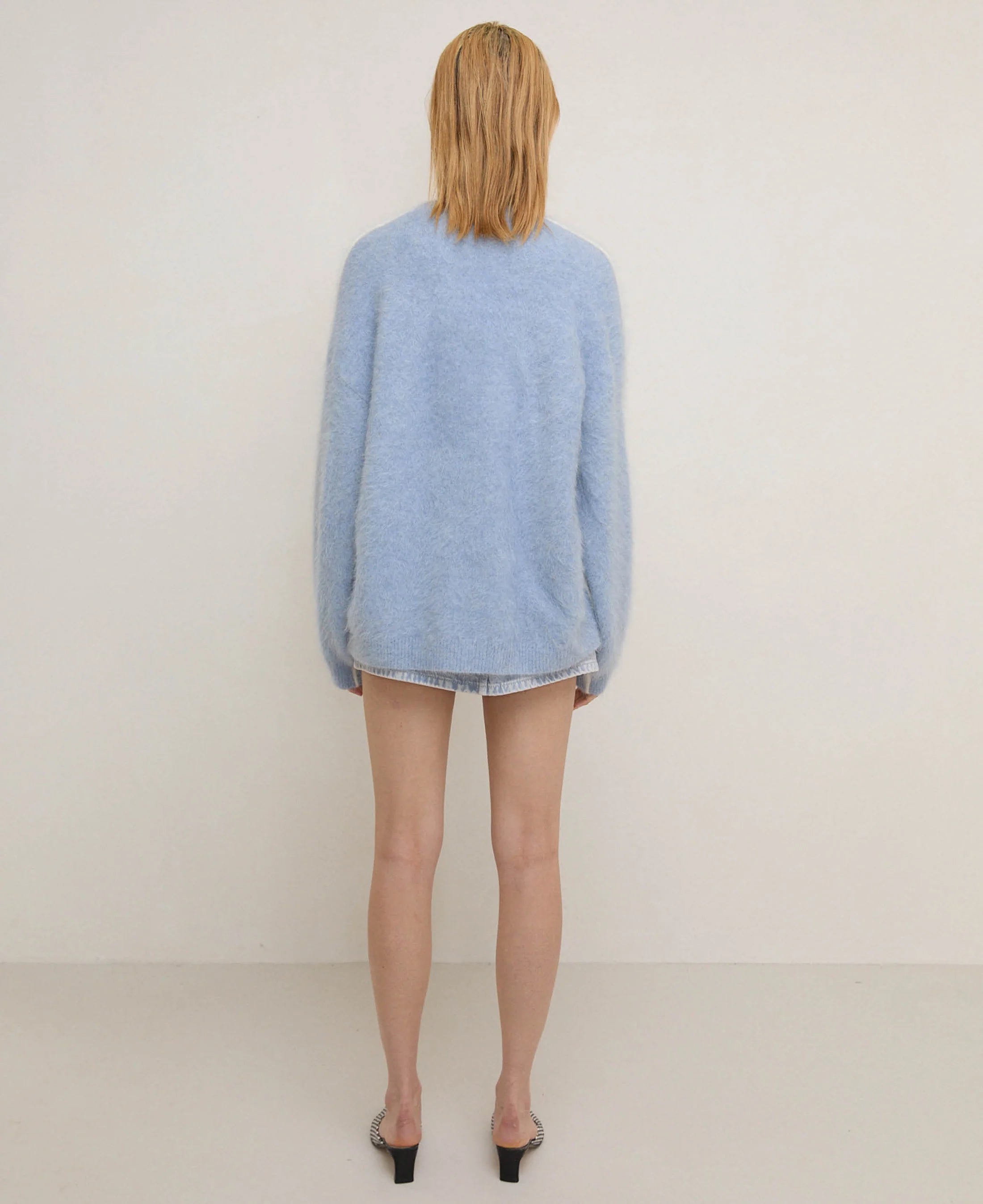 The luxurious brushed alpaca blend has an ultra-soft feel and layers perfectly over any look. Crafted with sculptural sleeves elevating the standard knit sweater, this style comes in 4 sizes XS, S, M, and L.