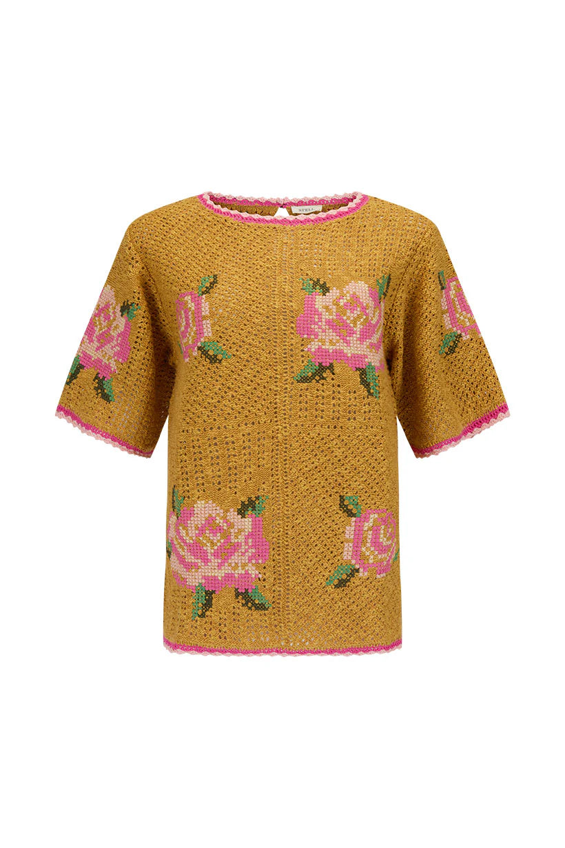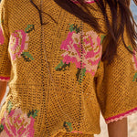 The Coastal Granny Top in mustard brings a playful nod to vintage charm with its true knit fabric and delicate embroidered flower design. Crafted from a breathable blend of linen and organic cotton, it’s perfect for layering or standing out solo. Pair it with the Coastal Granny Maxi Cardigan and Mini Skirt for a retro-inspired outfit, or mix it with your favourite neutrals for an effortless, sunny style boost.