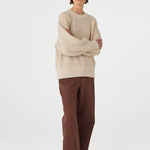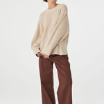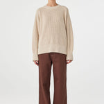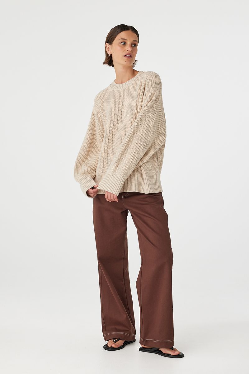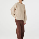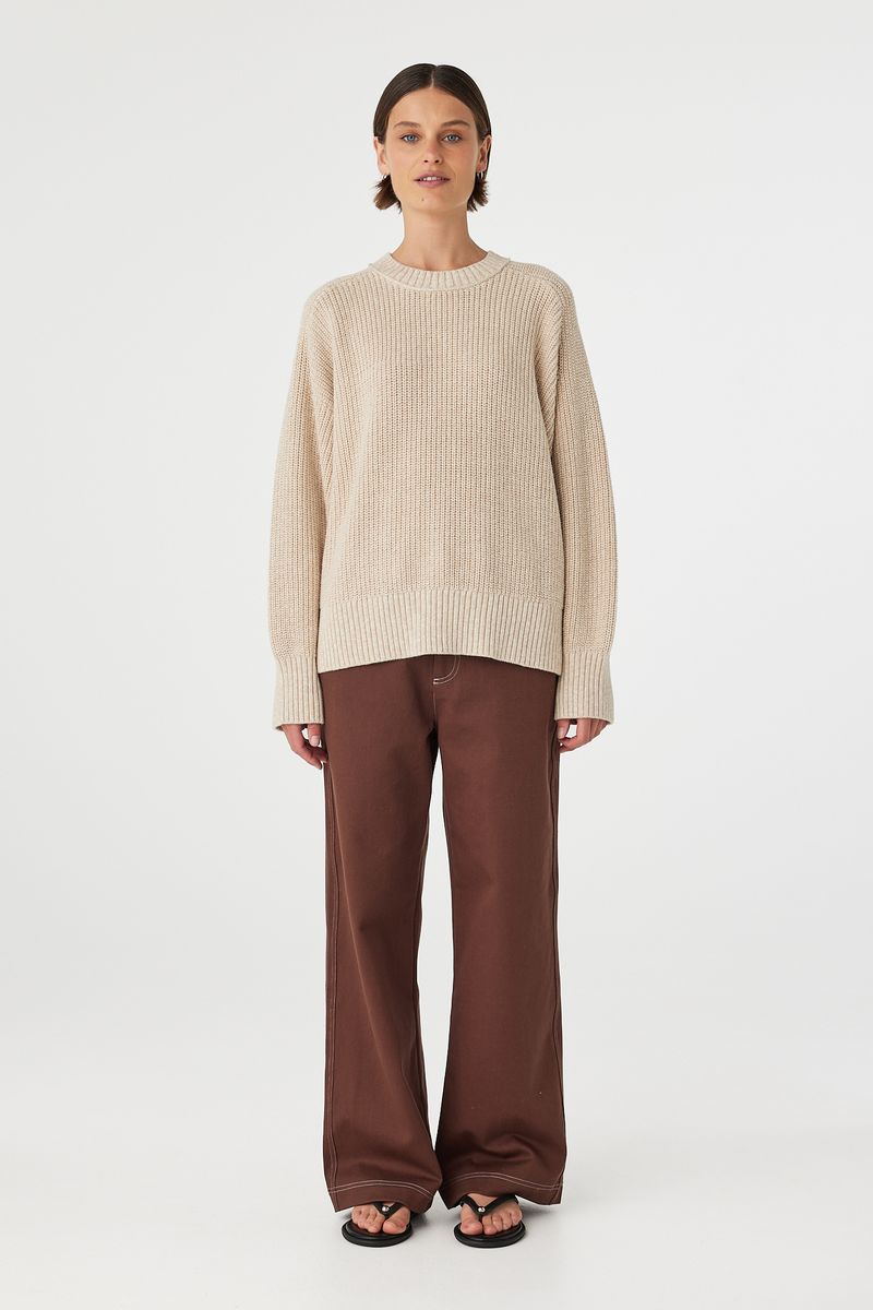 A chunky mottled knit sweater with an oversized fit and relaxed drape through the body. Made from 100% cotton, it has a textured feel with a naturally structured shape. Raglan sleeves and ribbed detailing at the neckline, sleeves and hem bring balance to the silhouette.