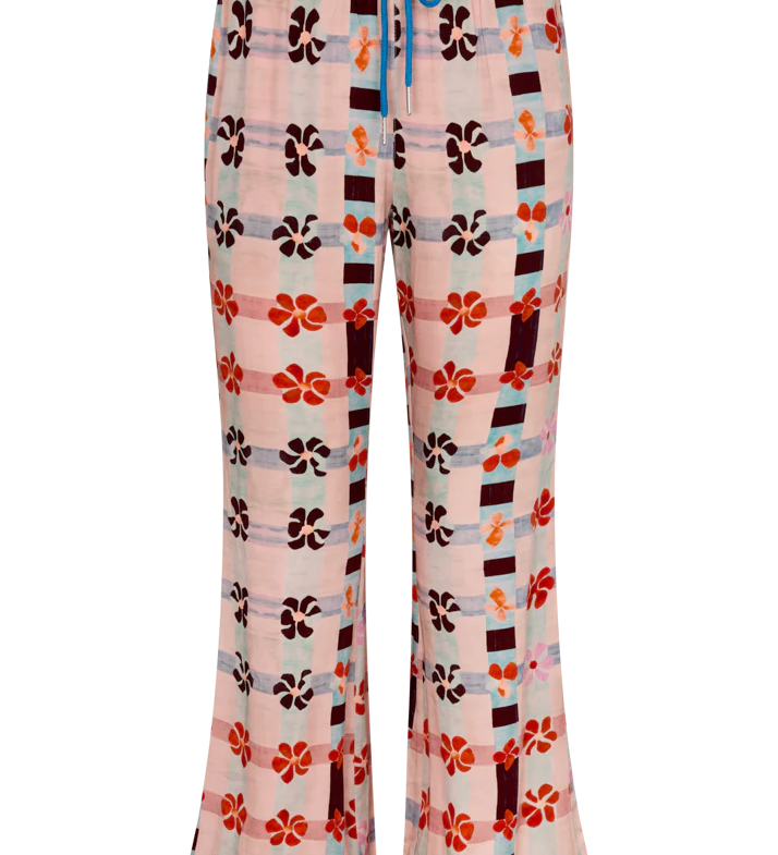 La Boheme Girls Viva Terry Pants - Cornflower Blue & Plum