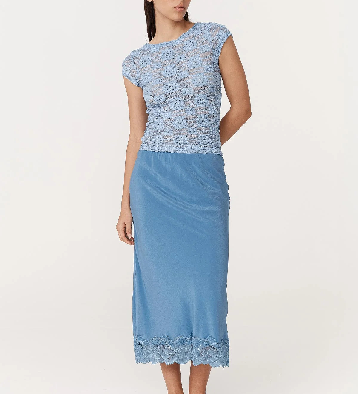 Rowie Marina Silk Midi Skirt - Cornflower