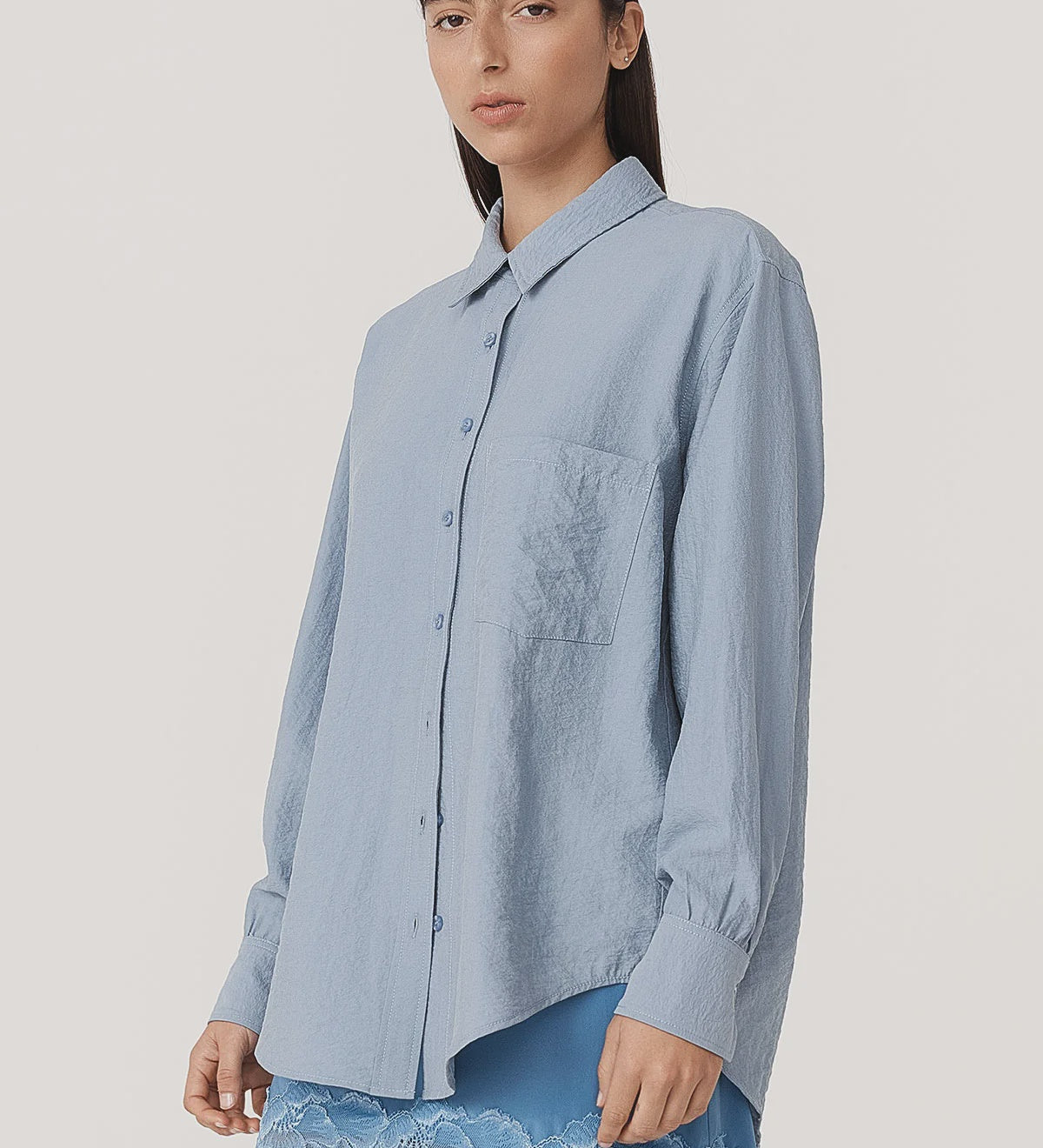 Rowie Ramona Silk Long Sleeve Shirt - Periwinkle
