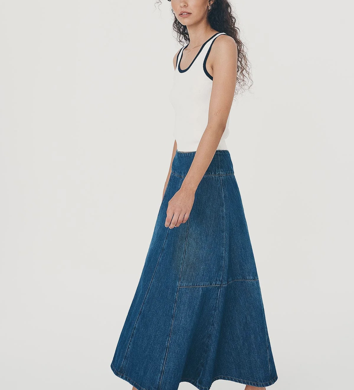 Rowie Vashti Denim Midi Skirt - Classic Denim