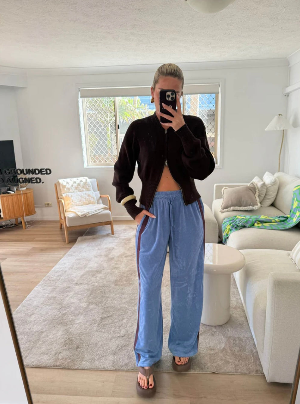 La Boheme Girls Viva Terry Pants - Cornflower Blue & Plum
