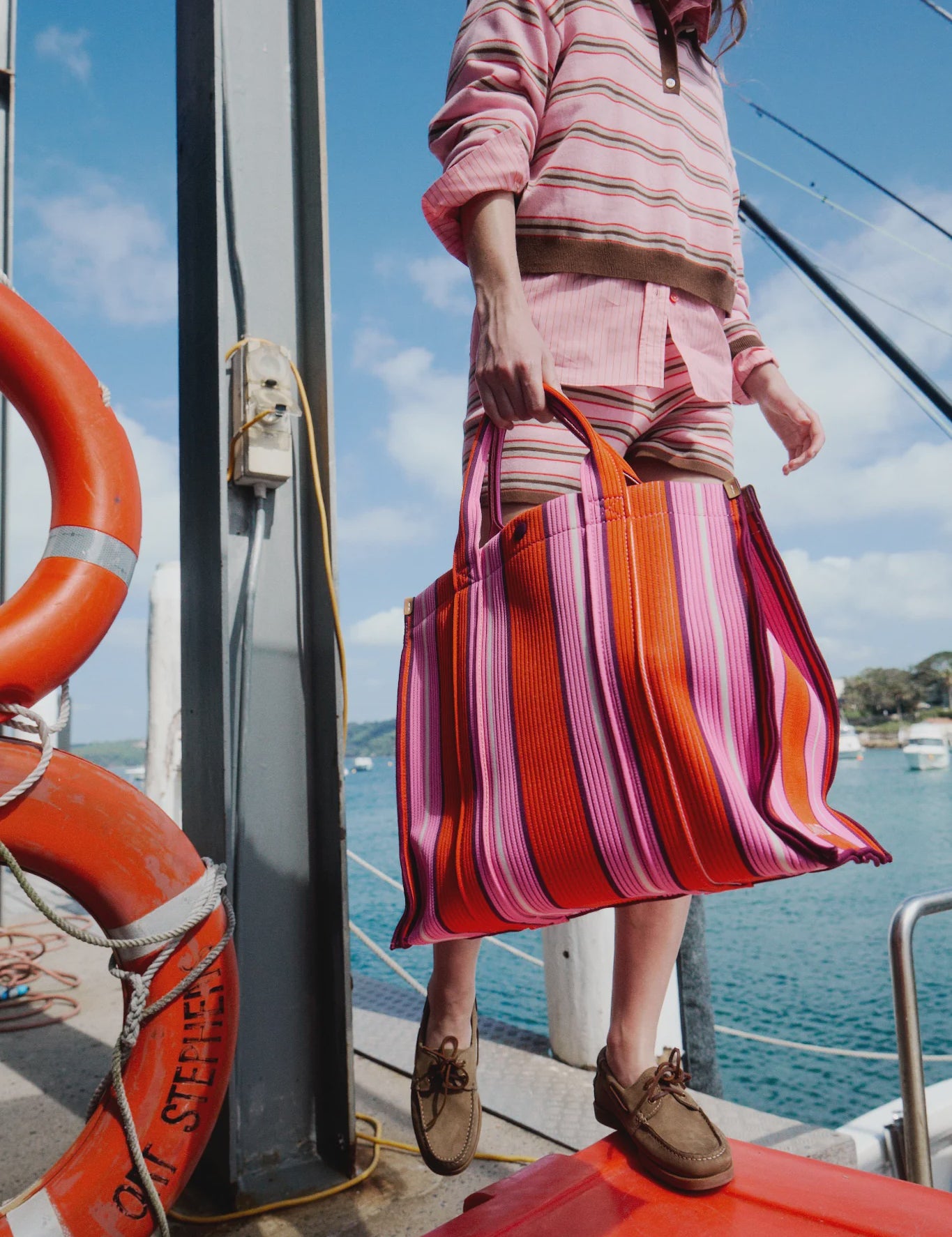 LMND Rialto Large Tote - Mandarina/Plumeria/Fig Stripe