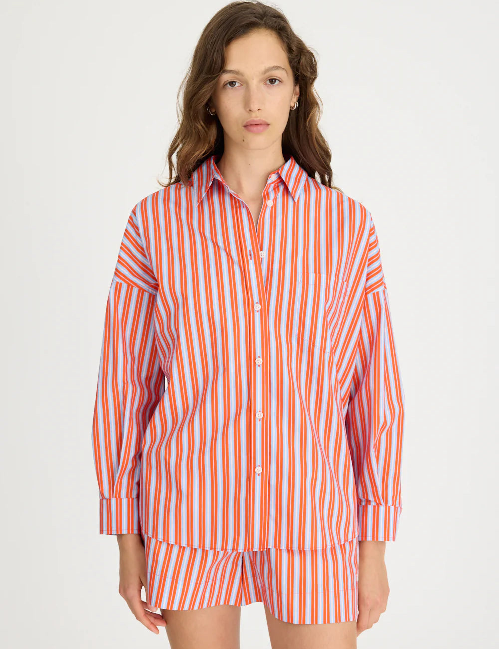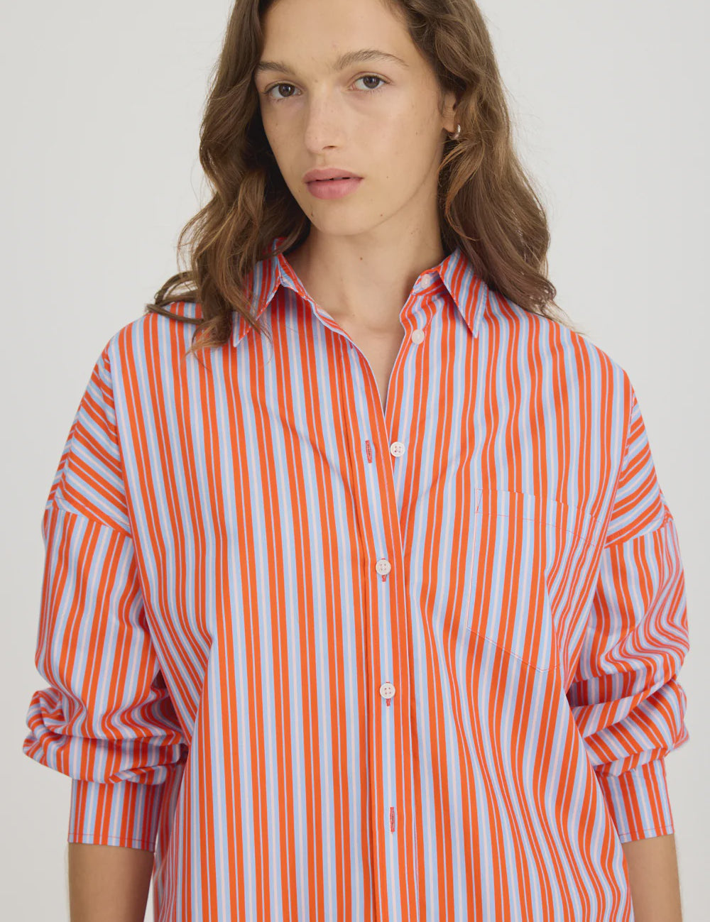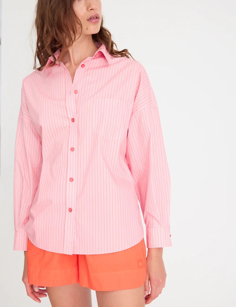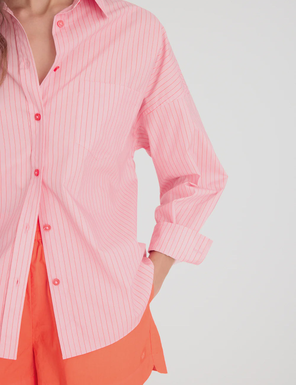 Chiara Long Sleeve Shirt - Pinstripe Pink / Spicy Orange
