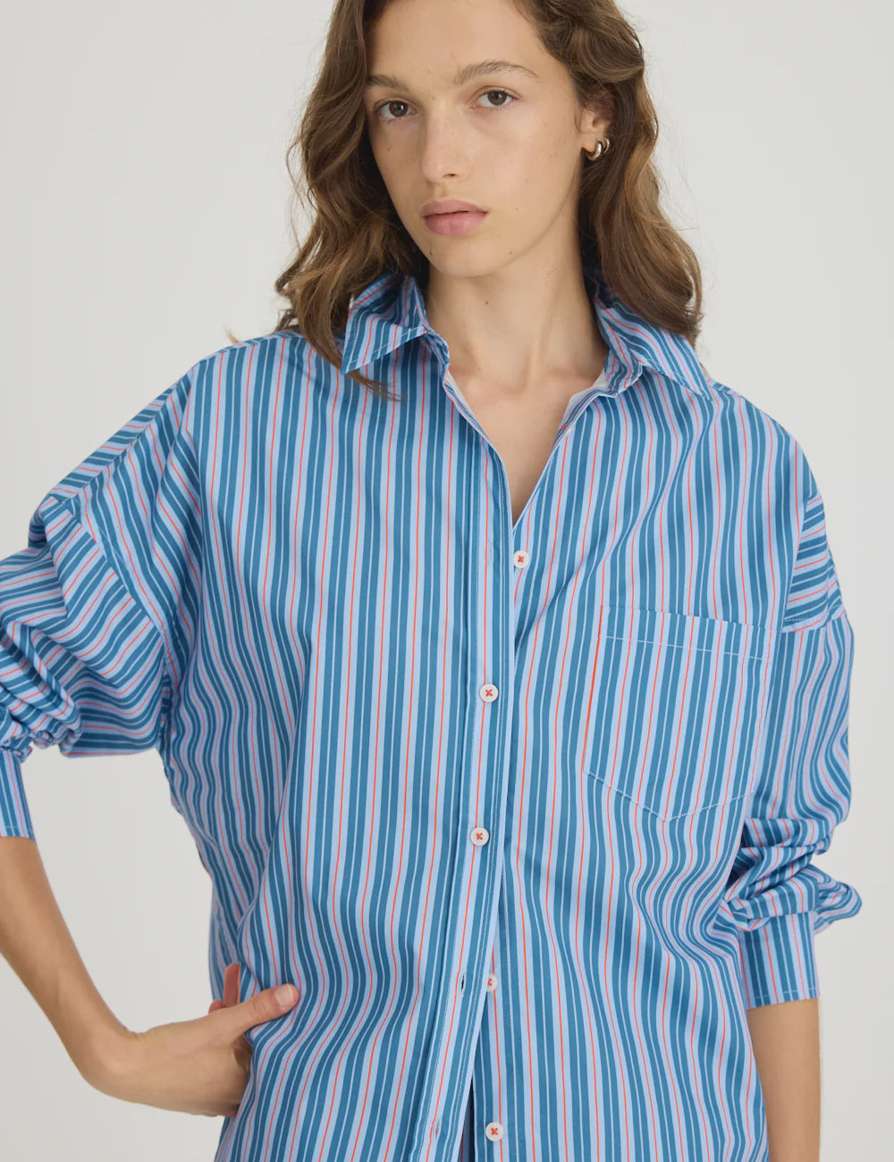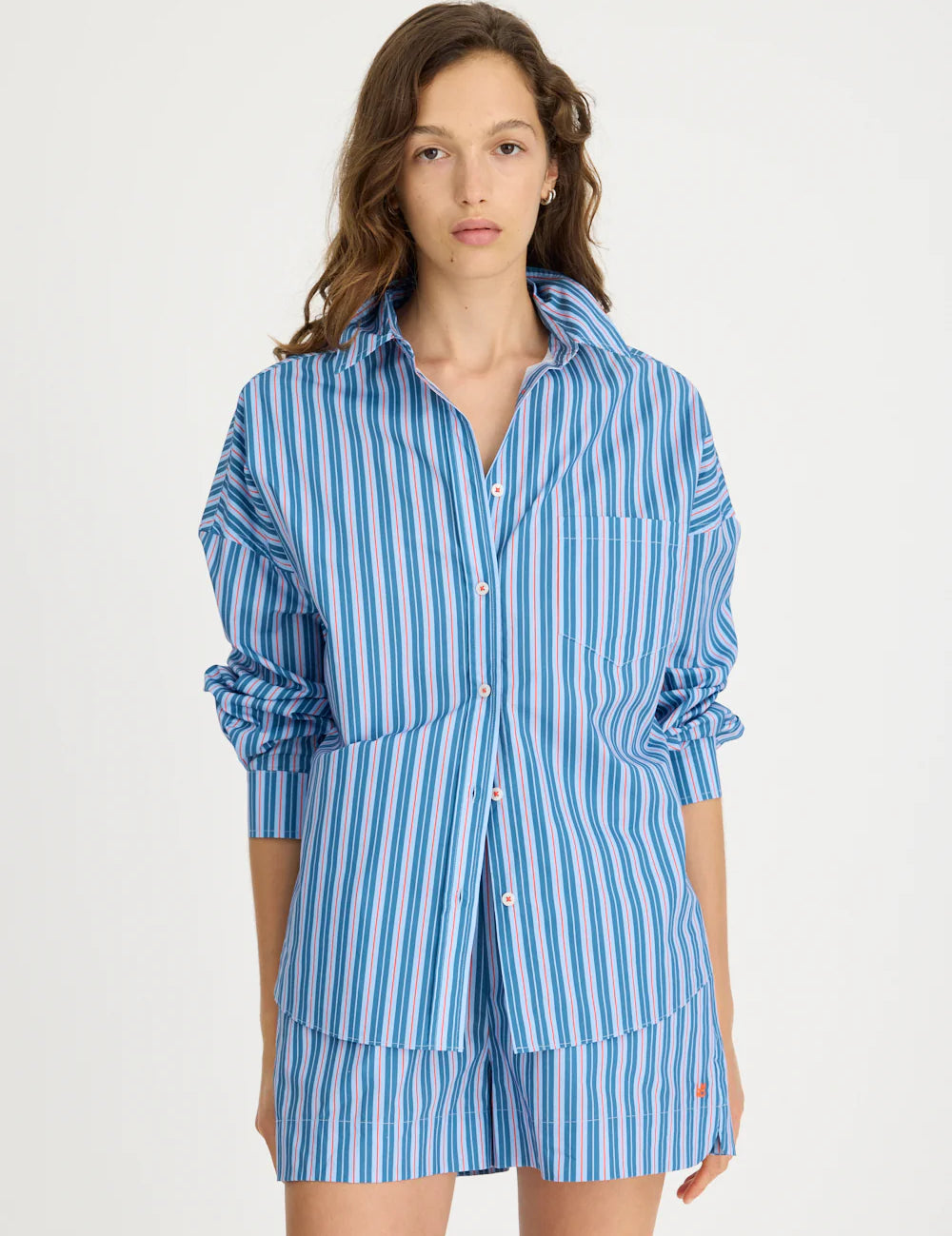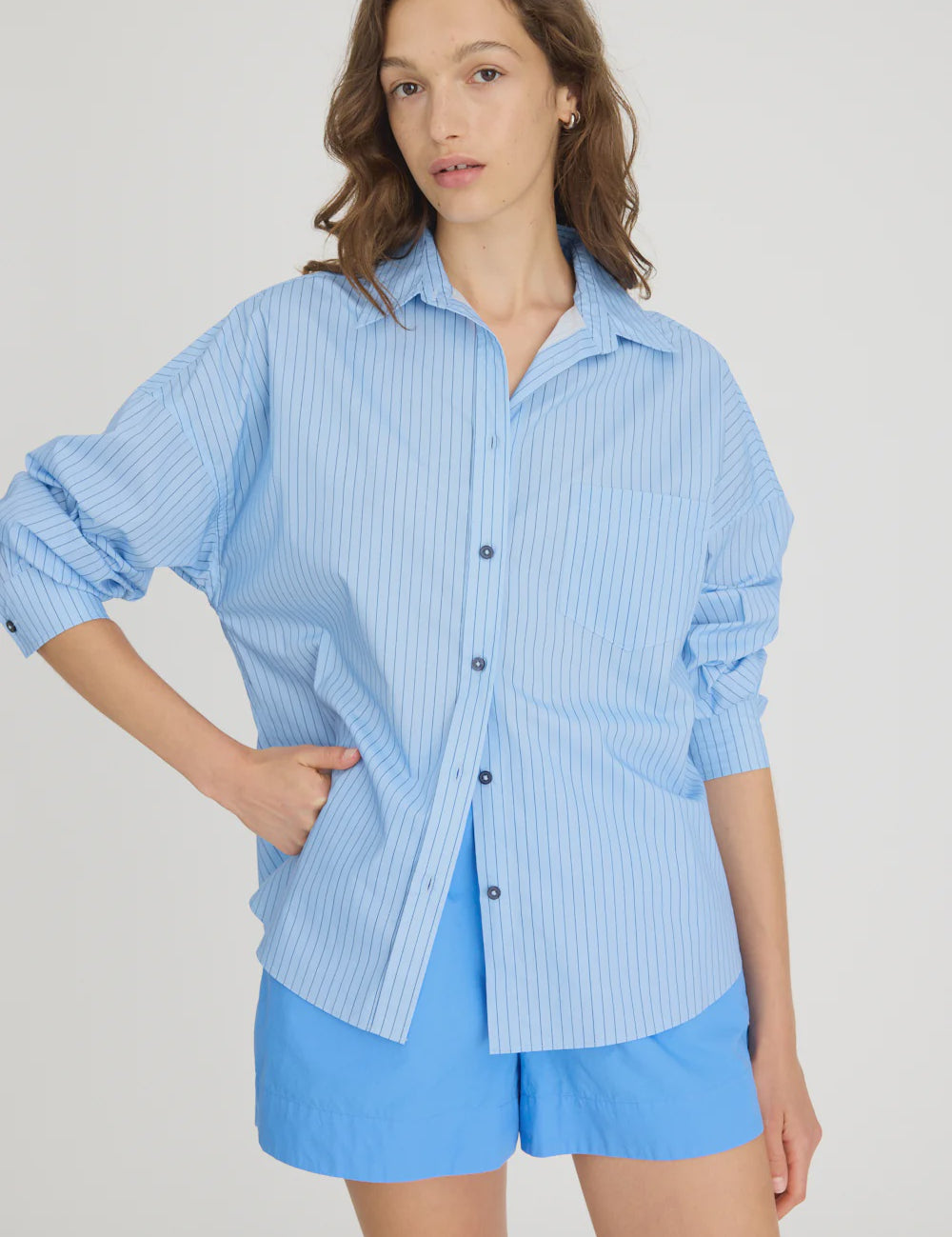 LMND Chiara Long Sleeve Shirt - Pinstripe Powder Blue/Navy
