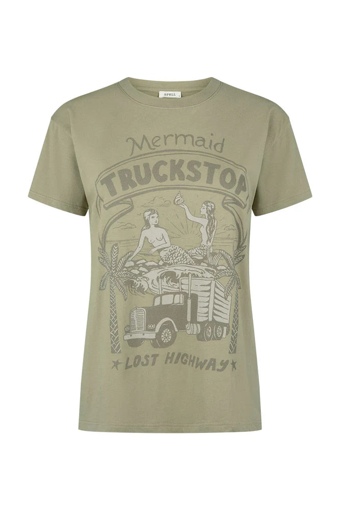 Spell Mermaid Truckstop Biker Tee - Khaki