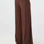 The Aria Pant in Espresso is a relaxed wide-leg knit, cut from 100% organic cotton for natural breathability. Its lightweight patterned weave flows with movement, while the ribbed elastic waist and side splits add ease and versatility. Designed for warm-weather layering and effortless transitions.