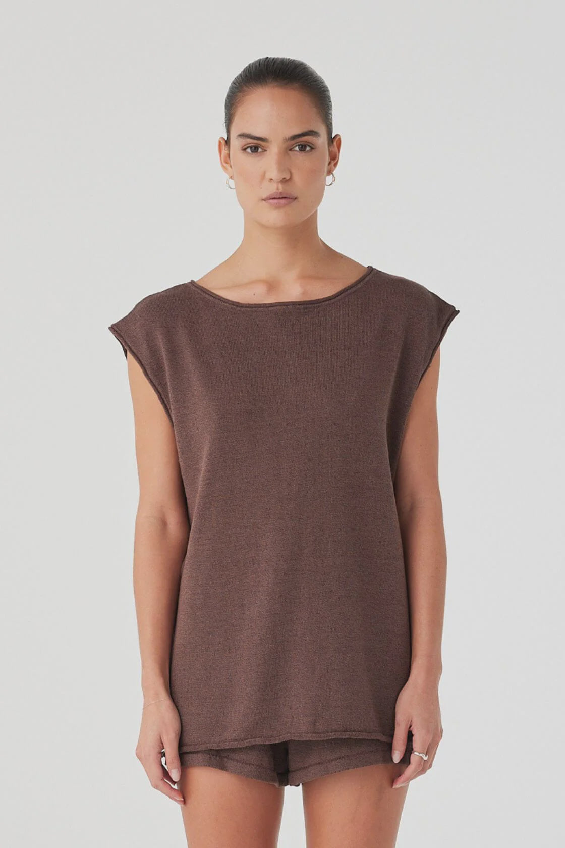 A breezy oversized top with tie-side detailing and a soft rolled finish. Relaxed through the body with subtle drape, designed for layering in warm climates.