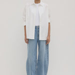 Longline cotton poplin shirt cut in a relaxed silhouette. Features a shaped hem, single button cuffs and double yoke pleat detail.