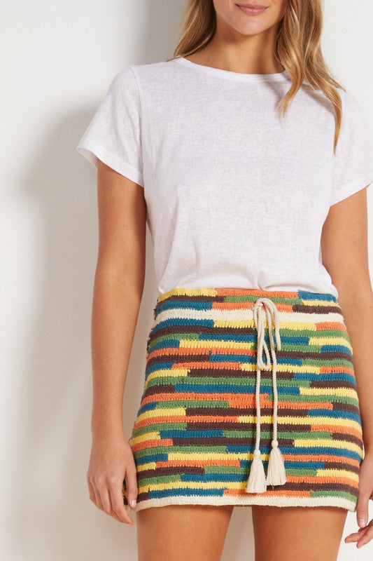 Hand-crocheted cotton meets playful stripes in this slim-fit mini skirt. The elasticated waist and A-line shape offer comfort with a handcrafted, artisanal finish - a piece that feels as unique as the moments you wear it.