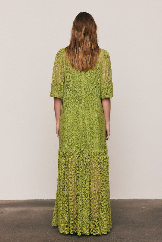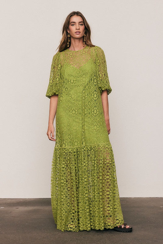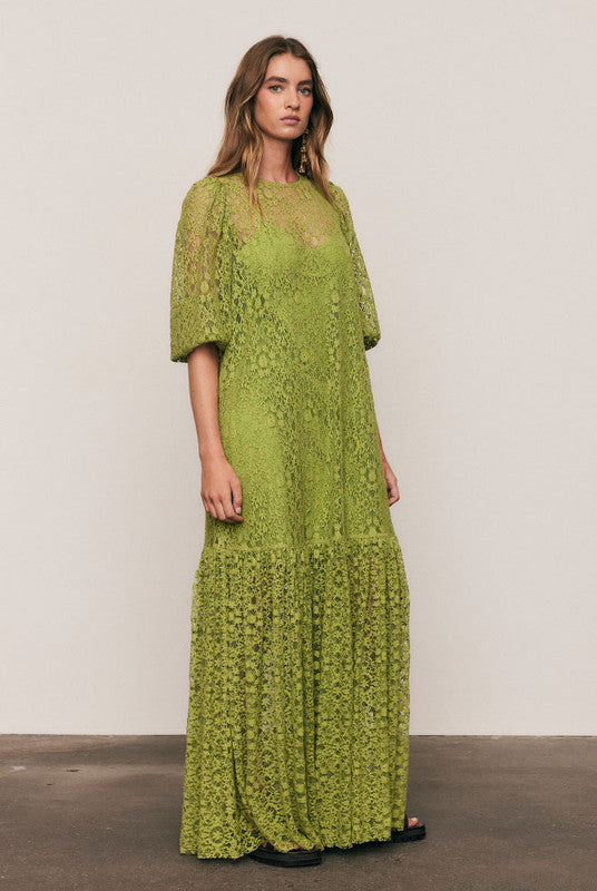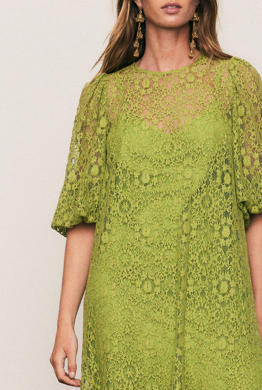 Elegant and enduring, the Ellie Lace Dress is crafted from a lightweight cotton-blend lace in radiant Citron, with a removable cotton slip for easy layering. Designed for a relaxed, graceful fit with voluminous sleeves and subtle texture, it embodies effortless bohemian refinement.