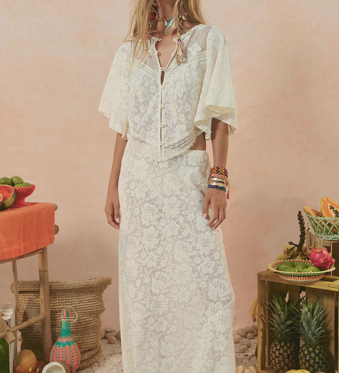 Spell Free Love Lace Bias Skirt - Vintage Cream