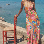 The Aphrodite Bias Maxi Dress in Rose is a bold statement of romantic freedom. Featuring a striking Aphrodite print and a flattering bias cut, this dress sculpts the silhouette with adjustable straps, a delicate frill at the waist, and flared skirt panels. Designed to celebrate love’s creative spirit, it moves effortlessly with you, capturing a daring elegance that feels both timeless and vividly alive.