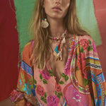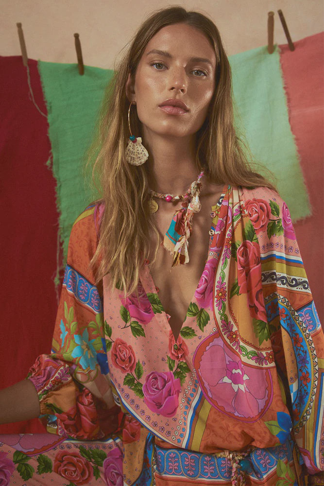 The Aphrodite Blouse in Rose makes a fearless statement with its striking print, inspired by the raw freedom and passion of love’s purest form. Featuring raglan sleeves with elasticated cuffs and a narrow self waist tie finished with beaded ends, this blouse sculpts the silhouette with daring sophistication. Celebrate bold romance and creative expression with every wear.