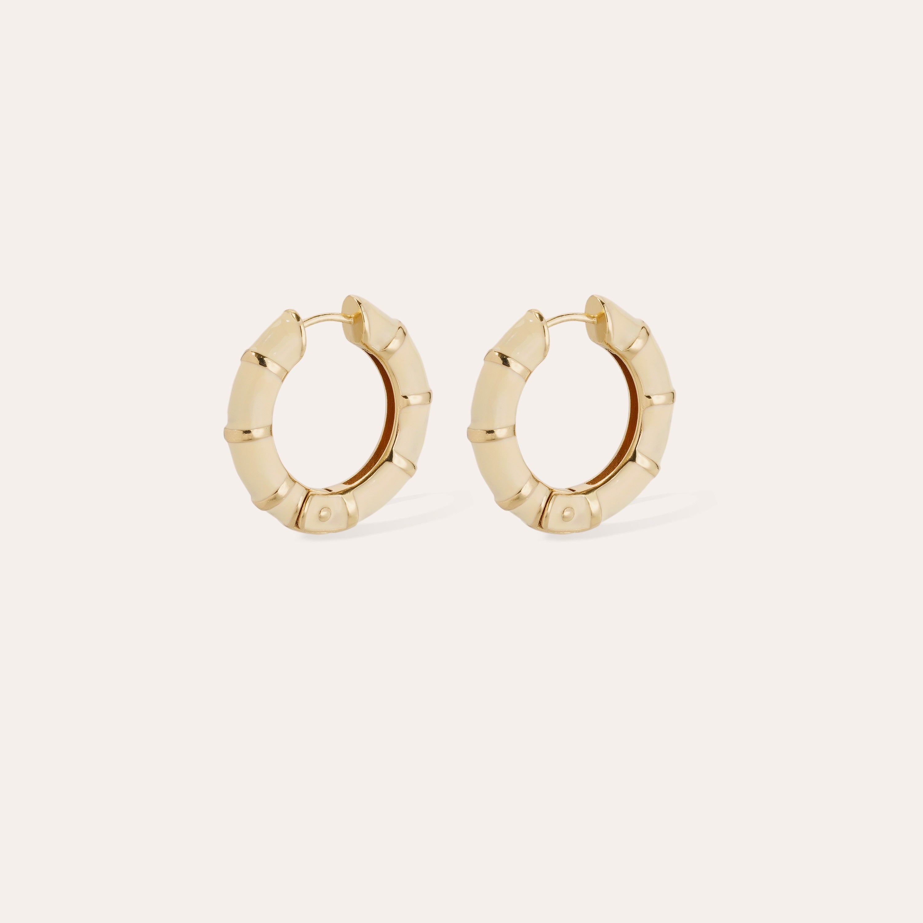 Gas Bijoux Bambou Enamel Hoop Earrings - Ivory