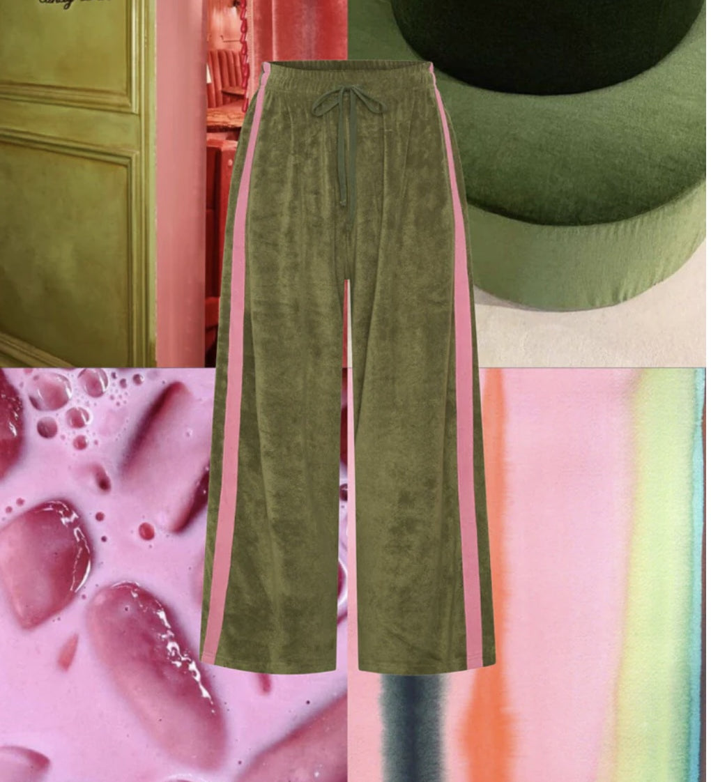 La Boheme Girls Viva Terry Pant - Olive & Pink