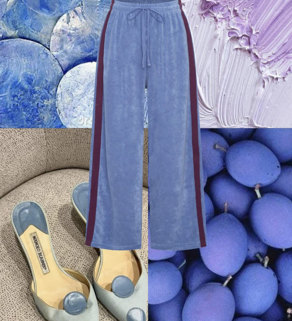 La Boheme Girls Viva Terry Pants - Cornflower Blue & Plum