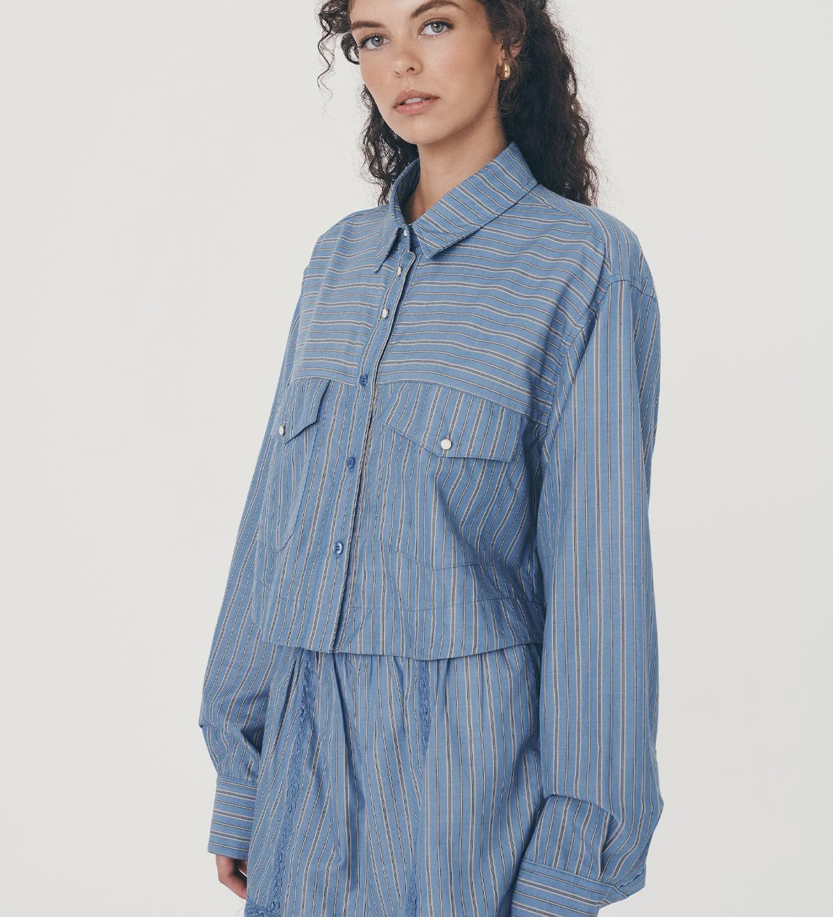 Rowie Cole Stripe Crop Shirt - Lagoon