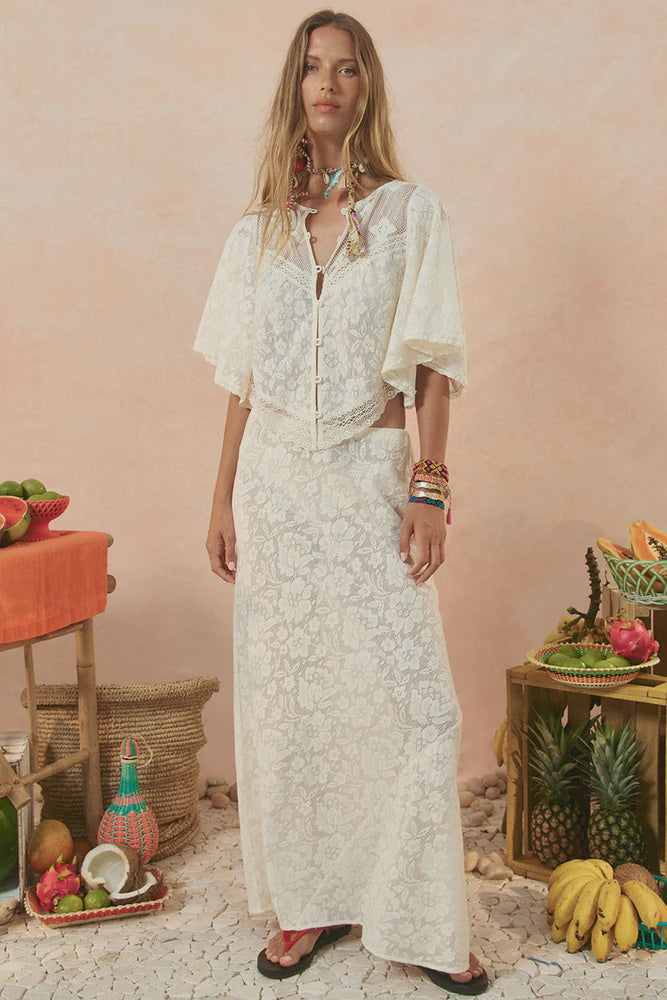 Spell Free Love Lace Bias Skirt - Vintage Cream