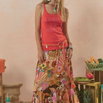 The Birth of Venus Maxi Skirt in Caramel brings a playful spirit and effortless style to your wardrobe. Crafted from 100% LENZING™ ECOVERO™ viscose with a unique Spell custom print, this skirt flows with graceful movement. The elastic waist ensures a comfortable fit, while the unlined design keeps it light and breezy—perfect for dancing through any day or night.