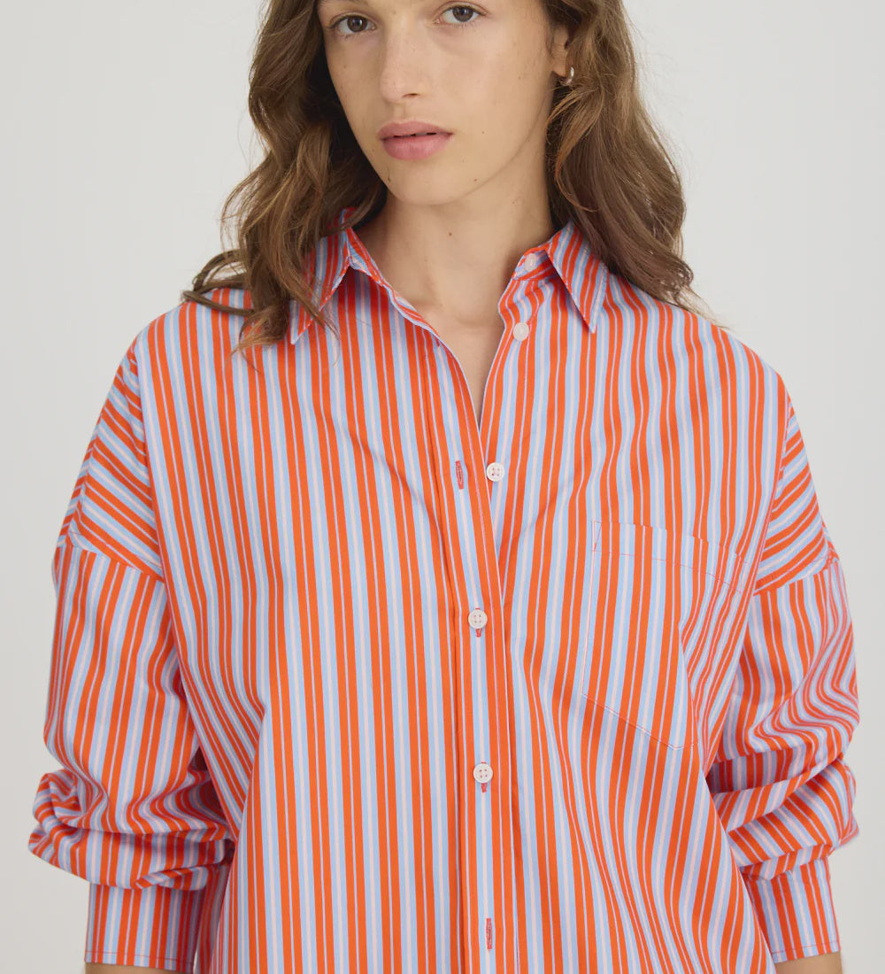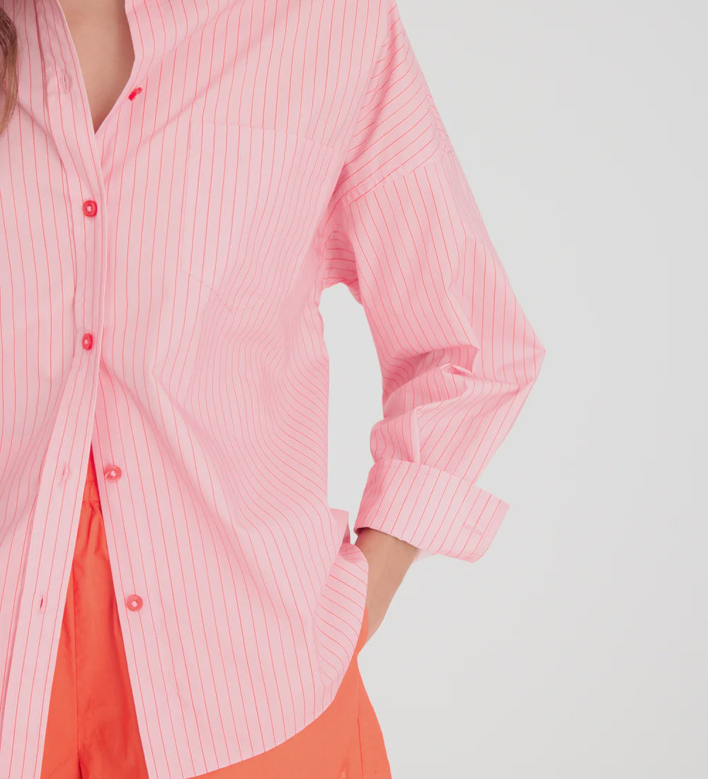 Chiara Long Sleeve Shirt - Pinstripe Pink / Spicy Orange