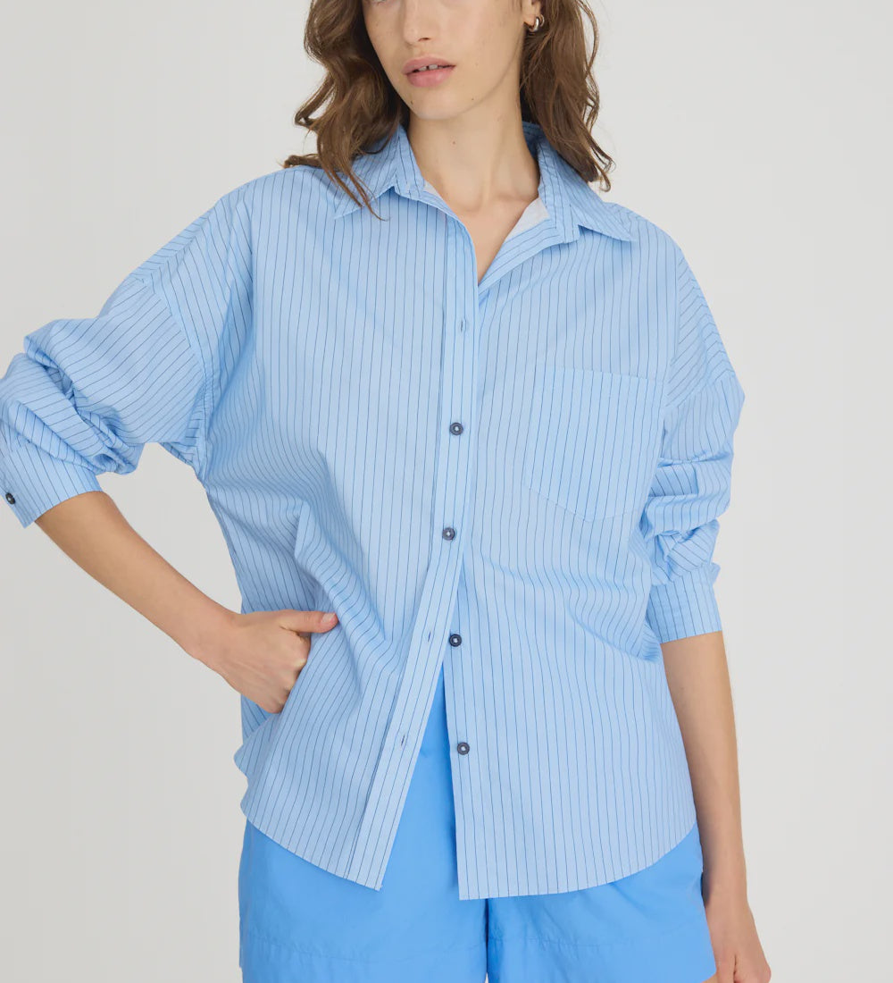 LMND Chiara Long Sleeve Shirt - Pinstripe Powder Blue/Navy
