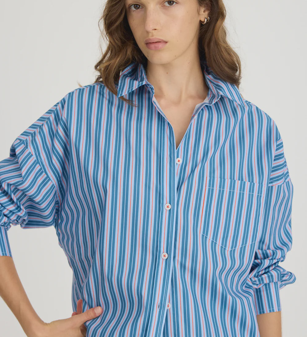LMND Chiara Long Sleeve Shirt Multi Stripe - Teal/Spicy Orange/ Blue