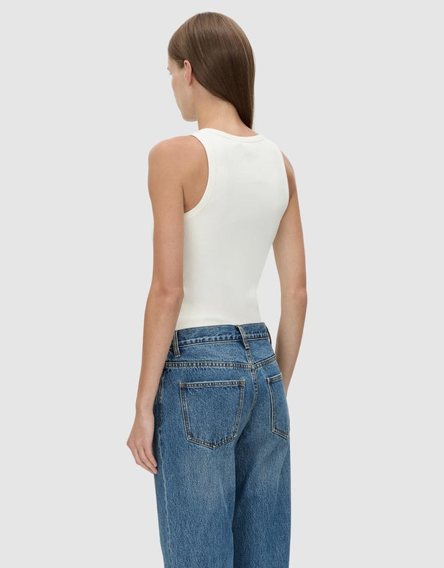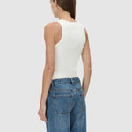 CAMILLA AND MARC Nora fitted scoop neck brown tank top in a stretchy cotton blend and quarter corozo button placket.