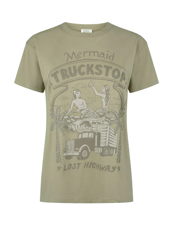 Spell Mermaid Truckstop Biker Tee - Khaki