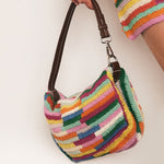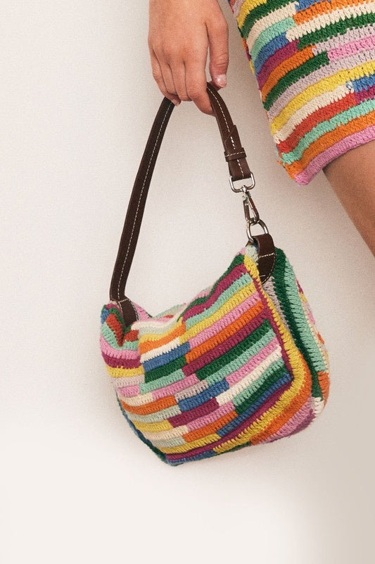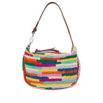 A burst of colour and craft, this cotton crochet mini bag features a zipper closure with leather tassel and straps. Lightweight and artisanal, it’s the perfect playful companion for casual days and festival nights.
